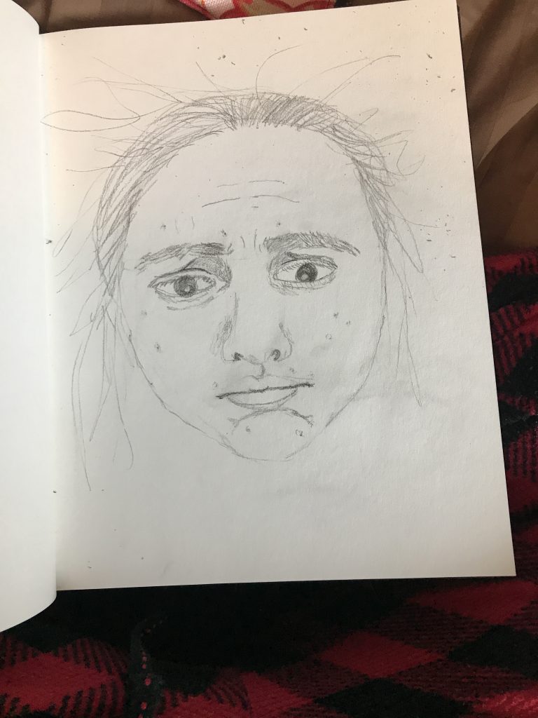 Self portrait assignment. I took a photo of my face after finding out my personal computer’s memory had been erased, due to falling on it (patch of ice)